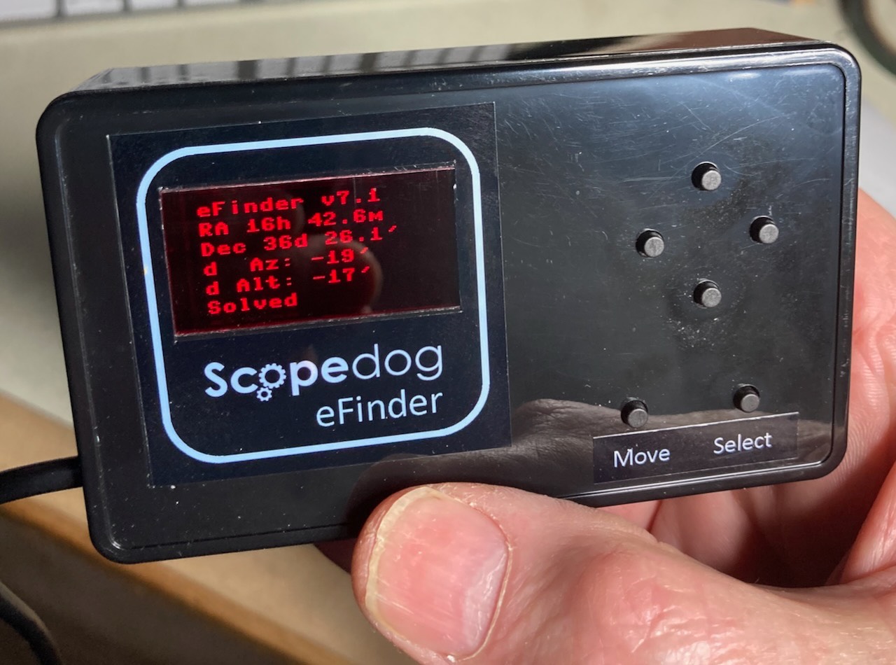 Next step will be to combine the eFinder plate-solving functions into the main ScopeDog control box hardware. Progress on my blog pages.