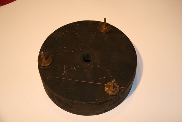 The wooden (oak) mirror cell was split. This had been caused by the wood drying out and shrinking and finally splitting when the mirror was finally bigger than the hole. I glued and cramped the cell to restore it, which left an oval hole (it had only shrunk across the grain of course). Brian restored the hole to circular on his lathe.