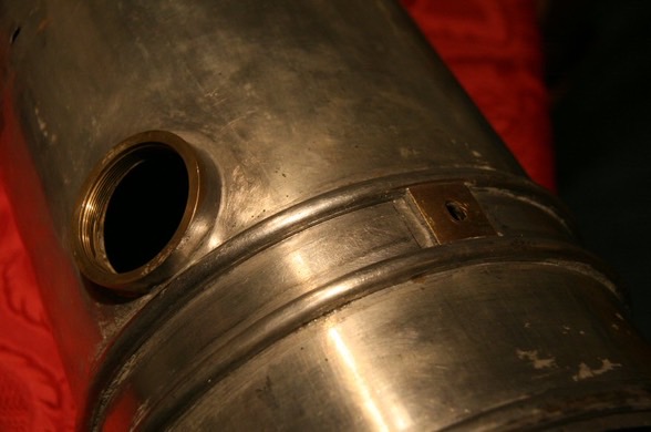 The tube was made from 4 rolled sheets of tin plated iron, soldered along all seams. Re-enforcing collars had been added (one at bottom, three at top. These were all copper. Brass inserts had been added where the mirror cell , spider and focuser mounted.